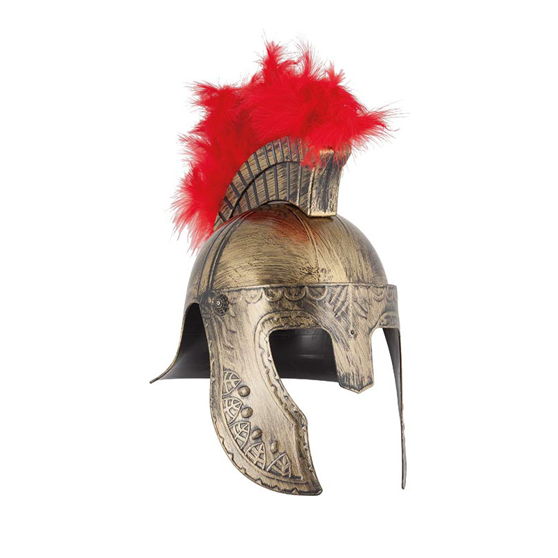 Casco de romano color dorado, plástico rígido.