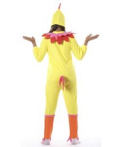 Este disfraz de gallina incluye mono con cuello y la capucha va separada.