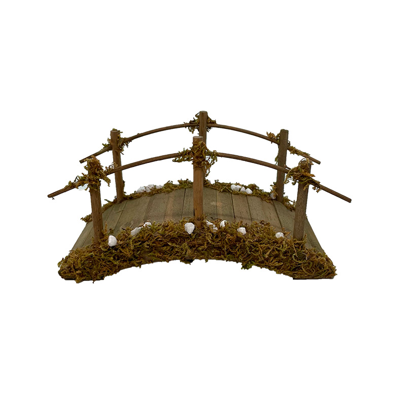 Precioso puente semicircular, fabricado en madera con adornos de musgo y piedra.